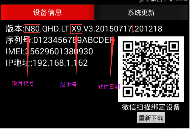 第二步,查看機器“關于”菜單里面第一行確定版本,下載、拷貝相應的UPdate文件(壓縮包不可解壓)放到TF卡,把卡插入機器后,復位,機器重啟,等待大概1-2分鐘后,機器自動重啟,出現小機器人,當小機器人消失后拔卡,等待機器自動更新軟件完畢;
