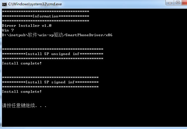 點擊任意鍵,驅動安裝完畢(注意,有些電腦安裝驅動時會彈出提示,請注意選擇,始終安裝驅動