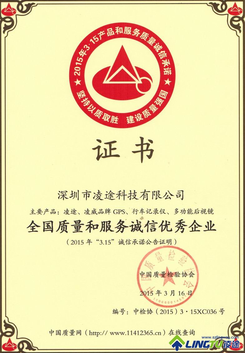 深圳市凌途科技全國質量和服務誠信優秀企業證書